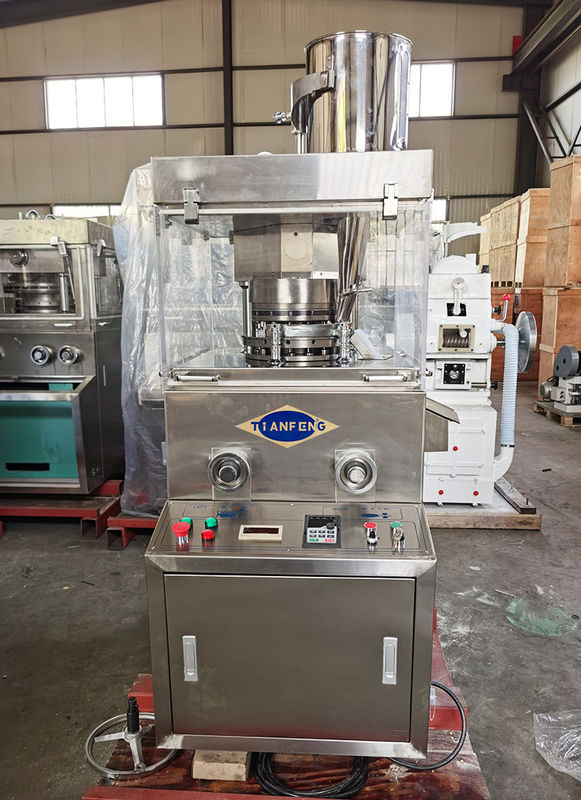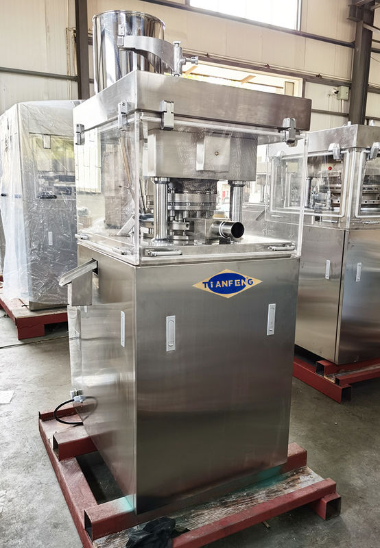 Diese Maschine ist ein automatisches Drehen der Einzelpresse, ununterbrochene tableting Maschine, die granulierte Rohstoffe in verschiedene Tabletten zusammendrückt. Sie wird hauptsächlich in der Produktion von Tabletten in der Pharmaindustrie verwendet. Es ist auch für Chemikalie, Nahrung, Elektronik und andere Wirtschaftsbereiche passend. Das äußere Gehäuse ist eine gekapselte Form. Das Material ist Edelstahl. Die interne Tabelle wird vom Edelstahl gemacht. Die Oberfläche der Drehscheibe wird besonders behandelt, um den Oberflächenglanz beizubehalten, um Kreuz-Kontamination zu verhindern und GMP-Bedingungen zu erfüllen. Die Türen und die Fenster, die mit transparentem Glas ausgerüstet werden, können den Zustand des Drückens offenbar beobachten und können völlig geöffnet sein, das für Innenreinigung und Wartung einfach ist. Alle Prüfer- und Funktionierenteile werden angemessen vereinbart. Das Frequenzumsetzungs-Geschwindigkeitsregelungsgerät wird für elektrische Geschwindigkeitsregelung, die bequem zu benützen ist, stabil in der Rotation benutzt, sicher und genau. Alle Übertragungseinrichtung wird innerhalb der Maschine vereinbart, um die Teile sauber zu halten. Ausgerüstet mit Überlastschutzgerät, wenn der Druck überbelastet wird, kann sie automatisch stoppen. Diese Maschine wird mit einem elektromagnetischen Bremsmotor und anderen Sicherheitsschutzgeräten ausgerüstet, die während der Operation auch justiert werden und betrieben werden können.
