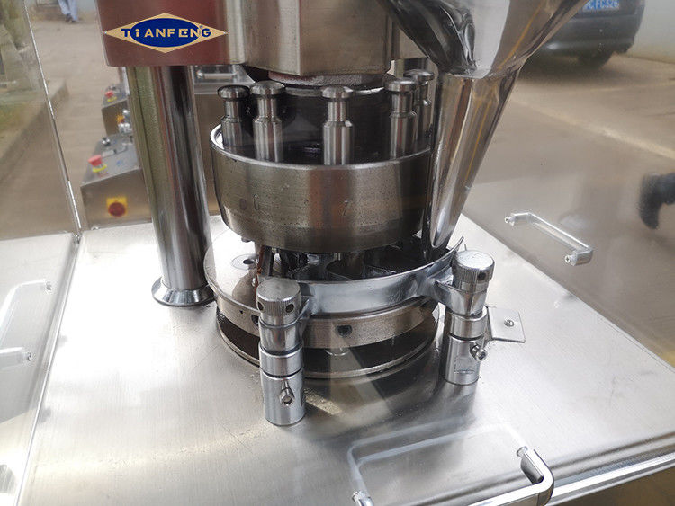 Die Granulation wird dann gründlich gemischt, um eine homogene Mischung zu erzeugen, die in die Tablettenpressmaschine eingespeist wird, wo sie direkt in die Pressenhöhle fließt.