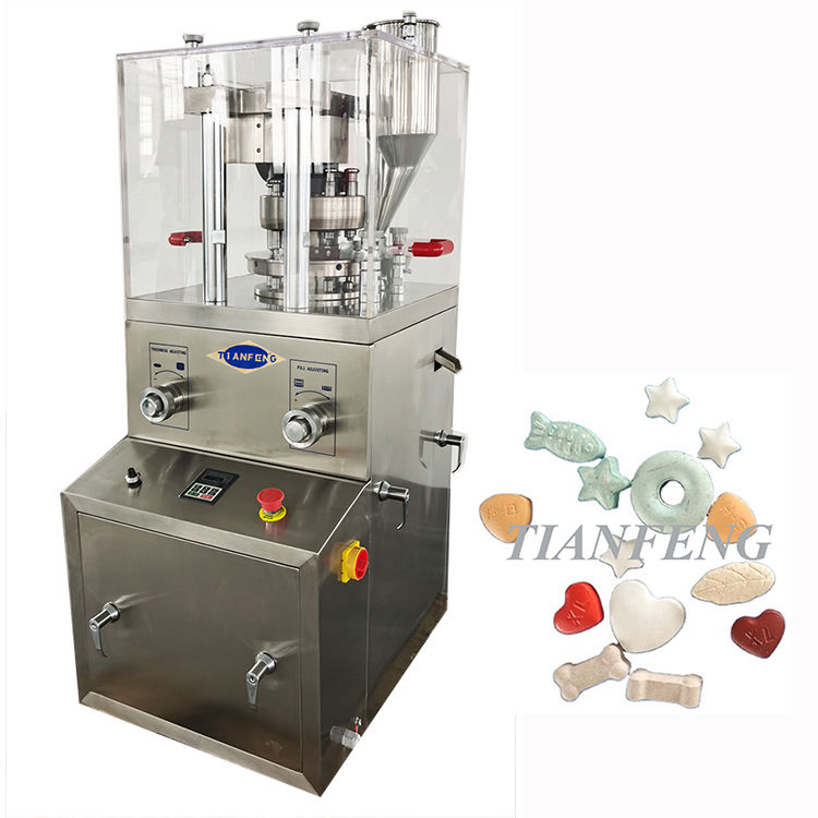 Diese Maschine wird häufig in der pharmazeutischen Industrie, der Lebensmittelindustrie, der chemischen Industrie, der Elektronikindustrie und anderen Industrien eingesetzt. Sie kann alle Arten von granularen Materialien verarbeiten, die den Anforderungen entsprechen. Sie kann runde oder speziell geformte Tabletten sowie gravierte Tabletten pressen.